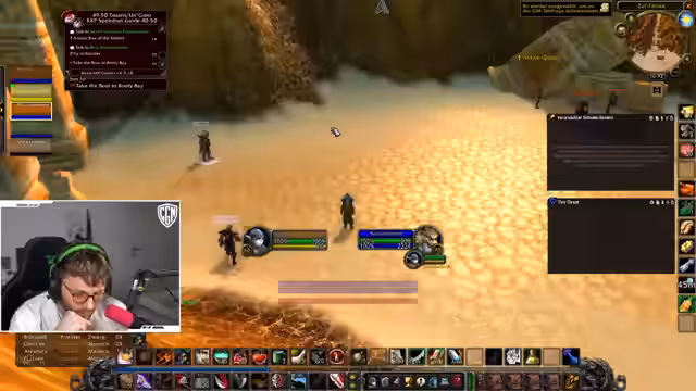 02:30:35Nachdem einige Quests in Schlingendorn abgeschlossen sind, wird das Zielgebiet Tanaris ins Auge gefasst. Bevor die Reise angetreten wird, muss eine Escort-Quest abgeschlossen werden. Da der NPC 'Tuga' nicht sofort aufzufinden ist, wird die Technik des 'Layerns' genutzt, um verschiedene Serverinstanzen zu durchsuchen. Auch persönliche Themen wie der Arbeitsalltag als Snowboardlehrer und eine Verletzung werden angesprochen.