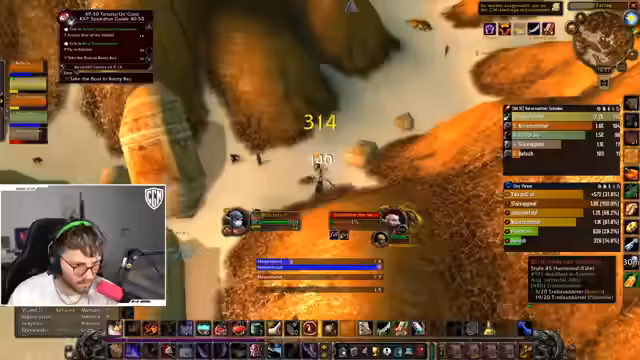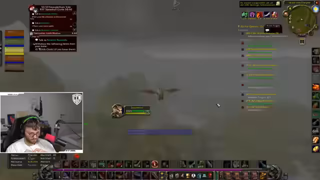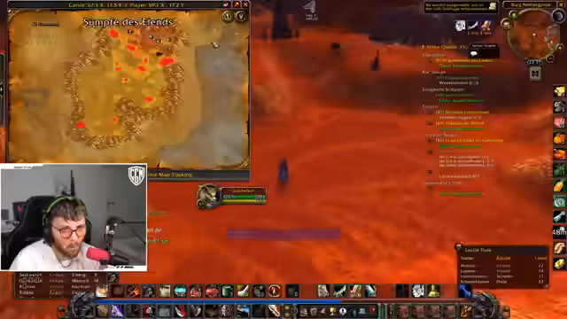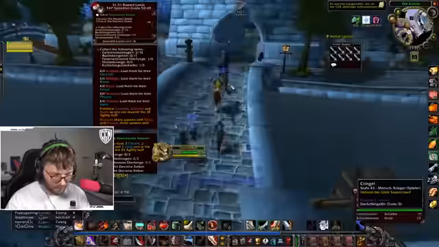 10:04:32Während des aktuellen Grinds in den 'Verwüsteten Landen' erwähnt der Streamer bereits die bevorstehenden, deutlich gefährlicheren Gebiete wie die 'Westlichen Pestländer'. Er freut sich darauf, dort wieder zu grinden, solange es ihm nicht unterleveled erscheint. Des Weiteren wird eine sehr unbeliebte Quest angesprochen, die er als seine 'Top 3 Hassquest' bezeichnet und die sich als wiederholbar herausstellt. Der Grund für das Erledigen dieser schrecklichen Quest sind später Raid-Belohnungen, was sie für den Fortschritt unumgänglich macht.