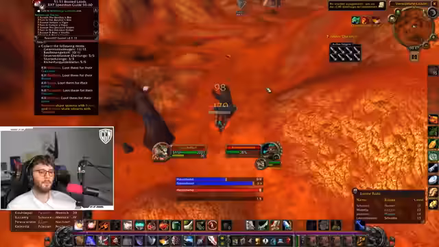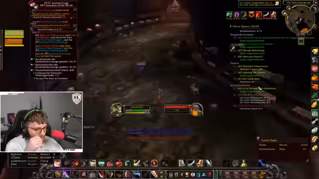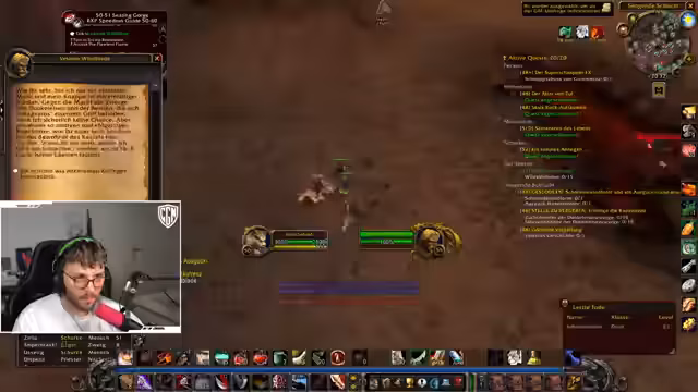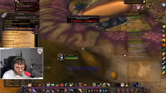 00:00:00Der Stream konzentriert sich anfangs auf Gameplay-Strategien im Spiel World of Warcraft. Der Streamer diskutiert die Herausforderungen einer Solo-Quest im Gebiet Umgoro für Level 55, wobei er vor besonders schnellen Elite-Mobs warnt. Er berichtet über einen verpatzten Versuch, sich durch einen Bereich zu bewegen, und betont, dass daraus gelernt wurde. Ein weiteres Thema ist die Shurken-Quest auf Level 50, die als schwierig beschrieben wird, da sie das Porten in einen gefährlichen Bereich mit einem patrouillierenden Elite-Golem erfordert und Rückschläge für die Höhle bedeuten kann.