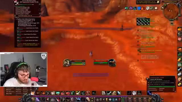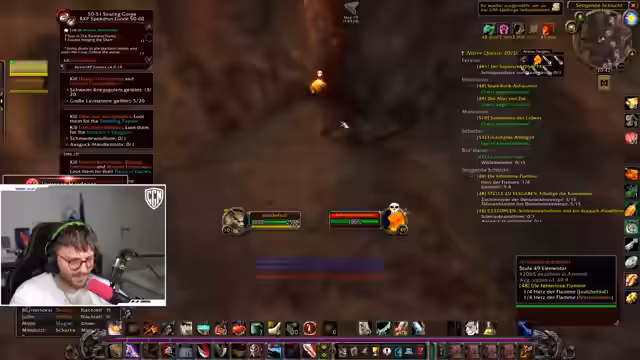08:29:27Der Fokus des Streams lag auf dem gemeinsamen Farmen von speziellen Gegenständen in World of Warcraft. Gemeinsam mit dem Streamer Niki wurde das Ziel verfolgt, Feuerherzen von Elementaren zu looten, da diese für eine Quest benötigt werden. Dabei wurde auf die effizienteste Methode geachtet, indem man sich an den Spawn-Punkten der Feuerelementare orientierte. Das Hauptproblem war die relativ niedrige Drop-Chance der Herzen, weshalb der Prozess als zeitaufwändig und nervig beschrieben wurde. Nachdem ein Item gedroppt war, wurde die Fortführung der Jagd besprochen.