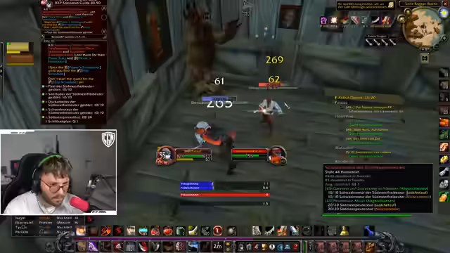 08:43:21Nachdem die Feuerherzen gesichert waren, wechselten die Streamer zu einer gefährlicheren Aufgabe: der gemeinsame Kampf gegen drei Elite-Zwergen. Die Kampfstrategie wurde im Detail besprochen: Der Streamer sollte einen Zwerg mit Kopfnuss (Stun) betäuben, ein zweiter sollte gebannt werden, und der dritte sollte zügig eliminiert werden. Es wurde der Notfall-Mechanismus für Paladine, "Lay on Hands", erwähnt, um den Tank im Notfall zu retten. Dieser Kampf stellte eine ernste Herausforderung dar und endete knapp, wobei der Streamer bis auf 6 % Lebenspunkte überlebte.