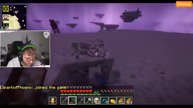 08:16:15Es wird das Material für Elytra gesichtet. Während des Fluges durchs End werden Geräusche der Gegner erwähnt und es wird eine Verfolgung durch die Schalker erwähnt. Der Streamer fliegt zum nächsten Schiff und möchte per Tipp-Sack nach Posten, südlich weiterreisen. Es wird ein Portal entdeckt, das jedoch nicht markiert wurde. Er sucht den Drachenkopf, wofür Unbreaking und Mending nötig sind und es wird erwähnt, dass man im End keinen sicheren Raum haben kann.