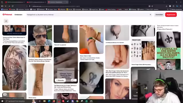 02:53:37Der Streamer detailliert seine Pläne für ein Tattoo auf der Hand, das Kakashi und einen Dragen symbolisieren soll. Er erklärt die genaue Platzierung und wie es bei getragener Kleidung sichtbar sein soll. Für seinen Oberschenkel denkt er über ein Manga-Panel nach und sucht nach konkreten Vorschlägen von der Community, um die finale Entscheidung zu treffen.