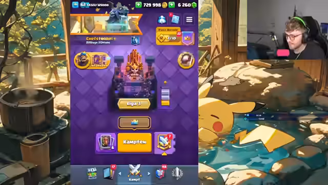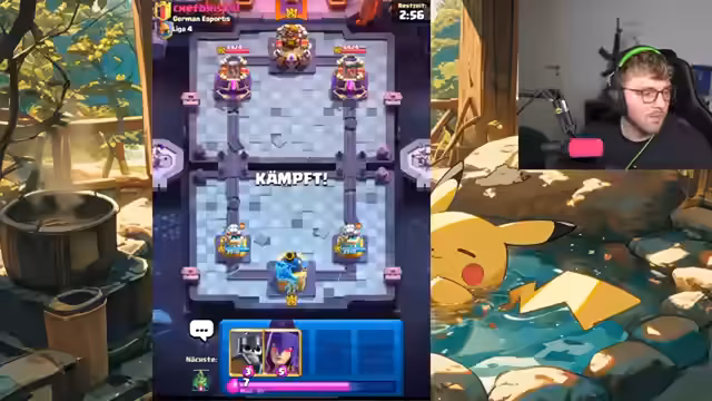 00:01:09Der Streamer startet den Main-Account-Push mit Clash Royale und begrüßt den Chat. Er erkundigt sich nach der aktuellen Meta und möglichen spielbaren Decks, während er nach spezifischen Emotes sucht. Es folgt eine Diskussion über das Golem-Deck mit Minions anstelle der Gobble Machine, wobei er strategische Anpassungen wie den Drachen-Boost bespricht und erste Matches analysiert. Dabei werden konkrete Kartenauswahl und Taktiken wie Graveyard-Counter mit Lightning besprochen, wobei er auch auf Verluste reagiert und Verbesserungspotenziale identifiziert.