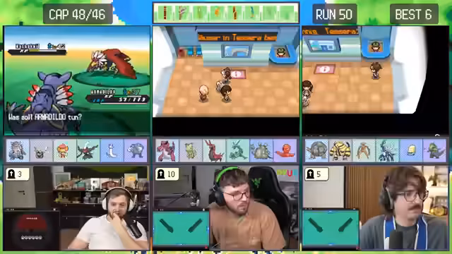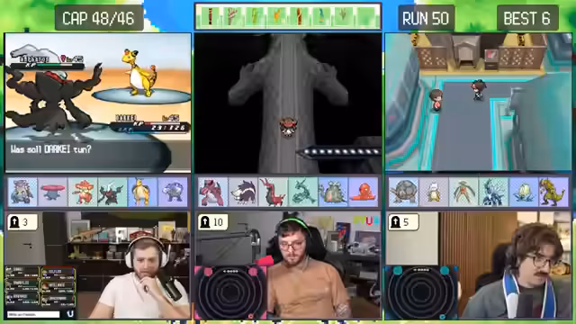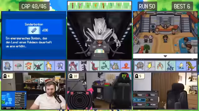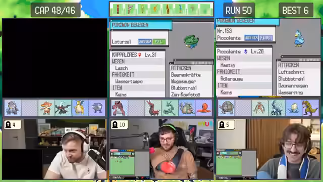 02:44:42Das Team navigiert durch eine komplexe Karte, um eine Arena zu erreichen und ihre Pokémon zu leveln. Der Streamer ist gezwungen, viele wertvolle Items und seltene Pokémon auf dem Weg liegen zu lassen, um Trainer-Kämpfe zu vermeiden und Risiken zu minimieren. Dies unterstreicht den strategischen Druck und die Schwierigkeiten, Ressourcen effizient zu verwalten.
