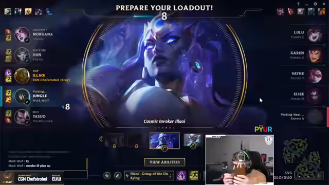 04:11:44Der Fokus verlagert sich auf das Spielen von League of Legends. Das Team setzt auf Drachenklaue als Haupt-Damage-Attacke und ist sich über die Champion-Besetzungen nicht ganz sicher, mit Überlegungen zu Champions wie Jhin und Illaoi. Es wird über die aktuellen Meta-Trends gesprochen und die Bedenken, Echo im Top-Lane zu spielen, werden thematisiert. Das Gameplay ist entspannt, aber es gibt Unsicherheiten in der Champion-Auswahl und der Taktik gegen bestimmte Gegner.