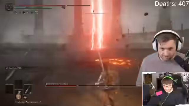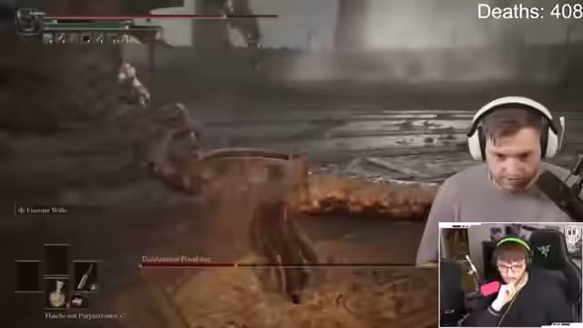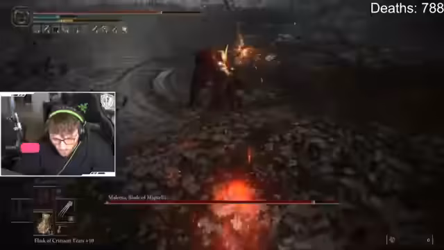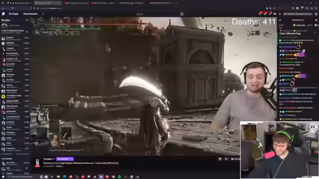 05:00:32Der Stream konzentriert sich auf den Versuch, den Boss Malenia in Elden Ring zu besiegen. Der Sprecher analysiert seine Taktik, stellt fest, dass er nicht ausweichen kann und somit benachteiligt ist. Er verliert oft das Leben, besonders in der zweiten Phase des Bosses, wo er die Mechaniken nicht mehr beherrscht. Der Chat gibt ihm Tipps zur Steuerung und zu Angriffsmustern, die er aber nur teilweise umsetzen kann. Nach zahlreichen Versuchen bleibt es bei dem Versuch und Malenia wird nicht im Stream besiegt.