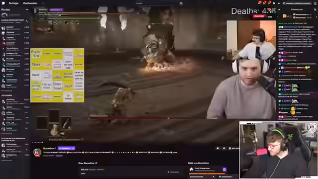 09:46:15Der Streamer kämpft weiterhin gegen den berittenen Boss und diskutiert, warum er trotz Ausweichrolle getroffen wird, was er auf den schrägen Boden zurückführt, der den AOE-Schaden des Gegners beeinflusst. Er nimmt sich eine Pause, um Parmesan zu reiben und seine Mahlzeit zu genießen, während er sich gleichzeitig dem Kampf widmet. Er äußert Frustration über fehlende Angriffsmöglichkeiten und die Stärke des Gegners, der ihn ständig unter Druck setzt. Der Streamer spricht über vegetarische Ernährung im Zusammenhang mit Parmesan. Er experimentiert mit verschiedenen Angriffen, findet aber keine effektive Strategie. Er stellt fest, dass das Pferd des Gegners eine größere Bedrohung darstellt als der Reiter selbst und dass er oft durch dessen Angriffe getötet wird. Der Streamer analysiert seine Fehler und sucht nach Möglichkeiten, seine Taktik zu verbessern, um den Boss zu besiegen. Er vergleicht die Schwierigkeit des aktuellen Gegners mit der des vorherigen Bosses, einem Drachen, und stellt fest, dass der berittene Gegner eine größere Herausforderung darstellt. Er erkennt, dass er seine Strategie in Phase 1 des Kampfes verbessern muss, um in Phase 2 eine bessere Chance zu haben.