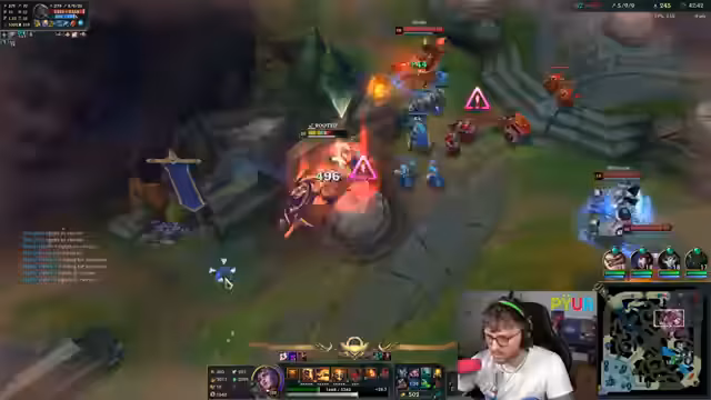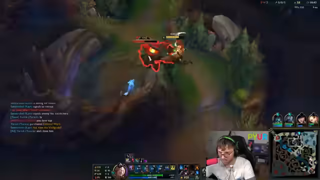 10:39:05Während des Spiels gibt es Schwierigkeiten mit der Jungle-Kontrol. Der Gegner, ein Mundo, kontinuierlich im Jungle des Streamers auftaucht und Farm stiehlt. Der Streamer ist frustriert, da er nicht gegen den vollen Bot-Lane playen kann. Sein Team scheint nicht auf die Moves des Gegners zu reagieren. Der Streamer kämpft darum, wieder ins Spiel zu kommen, aber seine Farm und Map-Presenz werden durch die ständigen Störungen stark beeinträchtigt.