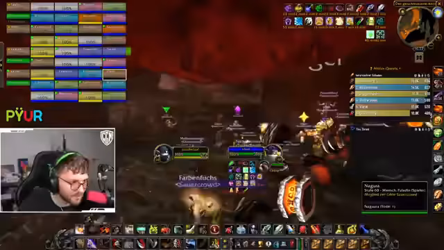 01:34:14Zu Beginn des Streams konzentriert sich der Streamer auf die Vorbereitung für den Molten-Core-Raid. Es geht um die Verteilung und den Konsum von verschiedenen Buffs und Tränken, insbesondere um Feuerresistenztränke, die für einige Spieler fehlen. Die Diskussion beinhaltet auch die Frage nach der Verteilung von Tränken wie Petris und Titanentränken. Jeder Spieler muss sich um seine eigenen Konsumgüter kümmern, wobei Tank-Priorität haben. Auch technische Aspekte wie das Interface und die Nutzung von Weak Auras werden angesprochen.