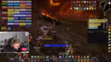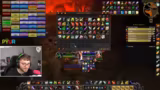 01:07:59Die letzten Minuten vor dem Raid-Einstieg sind von Hektik geprägt. Der Streamer versucht, letzten Platz im Inventar zu schaffen, verteilt letzte Verbrauchsgüter wie Gesundheitssteine an Warlocks und sammelt verstreute Gegenstände ein. Er trifft sich mit anderen Teilnehmern an der Thoriumspitze, führt ein Gruppenfoto durch und betont den enormen Zuspruch, den der Raid von der Community erhält.