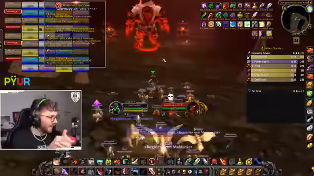 05:47:01Der Streamer unterbricht den Raid kurz für eine Anekdote über Mitaschis Auto und spielt auf seinen Status als bester deutscher Rogue an. Die Gruppe erreicht den Endboss Ragnaros. Der Streamer beschreibt die komplexen Mechanics, einschließlich Tank-Positionierung und Healer-Verteilung, um den Schaden zu managen. Wichtig ist, dass Heiler nah an ihren Melee-Gruppen stehen, um sie zu versorgen, während Tanks und Fernkämpfer ihre spezifischen Plätze einnehmen müssen.