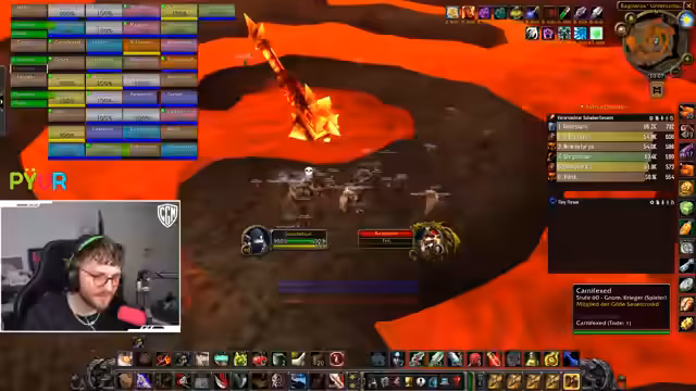 06:13:02Der Kampf beginnt, und der Streamer gibt kontinuierliche Anweisungen für die Spieler. Es wird eine klare Trennung zwischen Melee und Range eingehalten. Die Ranges können von der ersten Sekunde an volles DPS fahren, da sie keine Bedrozung generieren. Eine zentrale Taktik ist dasManagement von 'Feuerresi', das konsumiert werden muss, um der Lava zu entkommen. Wenn alle Stricke reißen, sollen die Spieler in der Lava aussitzen und warten. Wichtigster Grundsatz ist, unter keinen Umständen zu panikieren, da dies zum sofortigen Tod führt.