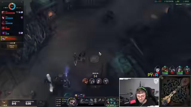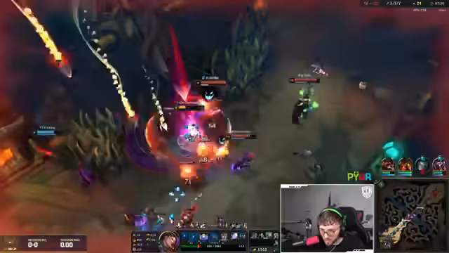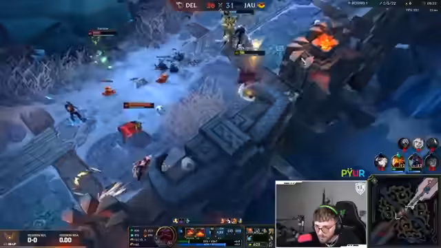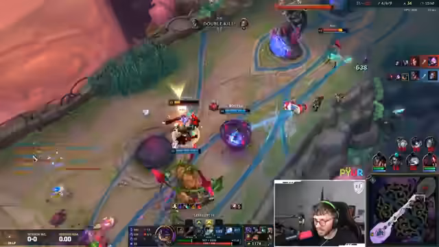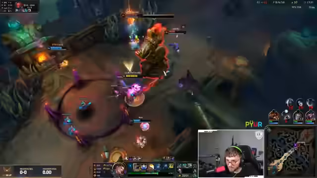 08:22:13Ein entscheidender Moment im Spiel ist erreicht. Der Streamer als Darius kann dank eines Resets, durch die Fähigkeiten von Renata, seine Ulti erneut einsetzen. Dies führt zum Sieg in einem Kampf. Allerdings wird der Gegner Olaf als Problem identifiziert, der unbesiegbar wirkt. Es wird ein neuer Plan entwickelt, der Team gegen den Olaf zu fokussieren.