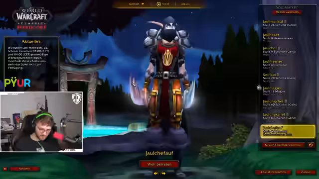 09:20:41Nach einer dramatischen Situation im Spiel äußert der Streamer den Wunsch, mit der Community zu raiden. Er sieht Potential in der Community und möchte mehr Eigeninitiative zeigen, anstatt auf das Go der Saurcrew zu warten. Die Möglichkeit, gemeinsam mit den Zuschauern Raids zu planen und durchzuführen, wird als attraktive Alternative zum ursprünglichen Plan für WoW MC-Raid gesehen.