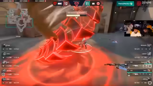 03:13:03Das Finale erreicht seinen Höhepunkt mit mehreren Matchpoints für Maus. Die Spannung ist kaum auszuhalten, als Fizzy mit gezieltem Movement und Aiming in der Mitte durchbricht und Musashi in eine schwierige Lage bringt. Die Rotations der Teams sind blitzschnell und strategisch, doch Musashi kann mit einem starken Play den entscheidenden Punkt für Maus holen. Das Team führt nun 12:6 und ist nur noch zwei Runden vom Titel entfernt. Die Atmosphäre ist elektrisierend, und der Streamer ist von der Qualität der Spiele beeindruckt.