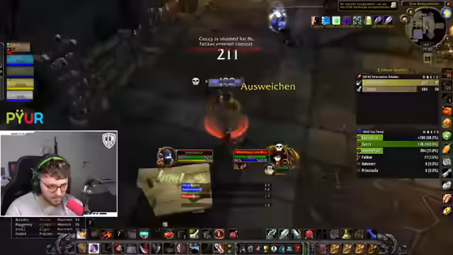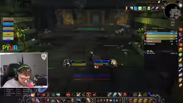 03:29:45Der Stream beginnt im Naxxramas-Armory-Dungeon. Es wird die genaue Position eines speziellen Mobs, dem Schwarzen Geist, erläutert, der sofort getötet werden muss. Da er ungünstig spawnen kann, wird eine Taktik entwickelt, bei der das gesamte Team entspannt aus dem Dungeon ausweichen kann, um die Gruppenformation neu aufzustellen. Dabei wird betont, dass es entscheidend ist, dass die Spieler sich hintereinander anstellen, um sicherzustellen, dass jeder Ziel-Feind auch angegriffen wird.