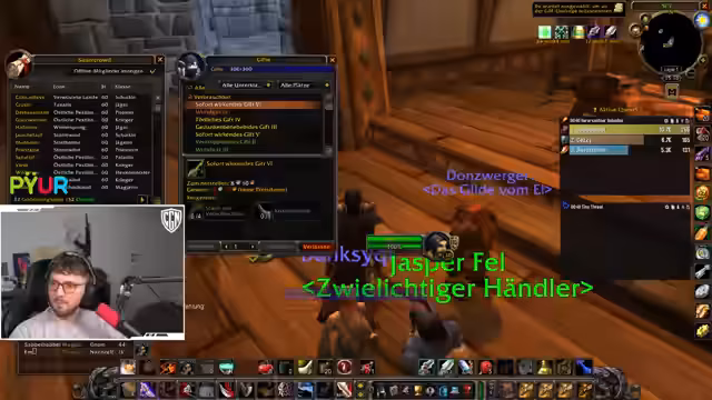 00:10:16Die Vorbereitungen für einen bevorstehenden Raid stehen im Fokus. Streamer und Community-Mitglieder planen den Einsatz von World Buffs, um die Performance zu optimieren, und diskutieren die Strategie dafür. Es wird über die Notwendigkeit von Ressourcen wie Tränke, Nahrung und Munition gesprochen. Chefstrobel erwähnt auch seine Bemühungen, eine starke Ausrüstung zusammenzustellen, darunter ein Schild und diverse Verzauberungen, und zeigt sich begeistert von den Möglichkeiten zur Min-Maxing seines Charakters.
