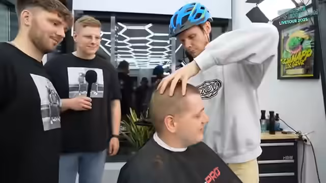 02:17:02Es wird offenbart, dass Max und Flo eine spontane Wette abgeschlossen haben, die zur Folge hat, dass sie sich die sogenannte Slim Shady-Frisur, einen komplett blonden Kurzhaarschnitt, schneiden lassen. Chef entscheidet sich für eine weniger radikale Variante, bei der er nur Strähnchen in seine Haare lässt. Während des Färbeprozesses für Max, der sehr juckend und brennend ist, unterhalten sich die Streamer über das Aussehen und die möglichen Reaktionen der Leute. Das Ergebnis wird präsentiert und die Stimmung ist gespannt auf das Endergebnis.