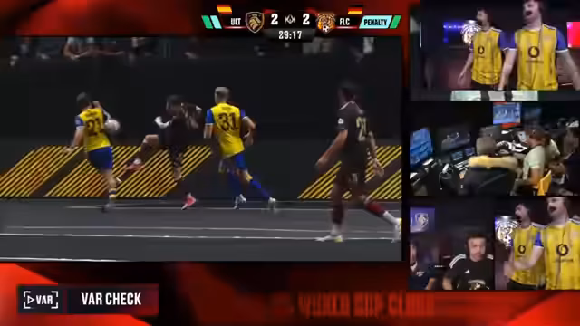 01:31:07Im weiteren Spielverlauf werden die ersten Secret Cards aktiviert. Die spanische Mannschaft nutzt eine Karte für einen Präsidenten-Penalty, was auf den deutschen Torwart zukommt. Gleichzeitig nutzen die Deutschen ebenfalls eine Karte, um den Druck auf die spanische Abwehr aufrechtzuerhalten. Das Spiel bleibt bislang offen und kampfbetont. Der Spanische Monte, ein Schlüsselspieler der Kontrahenten, schießt einen Elfmeter, der von deutschen Fans als ungerechtfertigt empfunden wird und sorgt für erste Diskussionen im Chat.