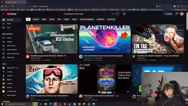 04:56:59Ein Thema wechselt zur Funktionsweise von illegalem Filesharing. Es wird eine Website namens 'saugstube.com' als Suchmaschine für illegale Downloads vorgestellt. Sie agiert wie ein Google für die Szene und sammelt Links von Nutzern. Der Streamer erwähnt, dass man sich bei solchen Plattformen mit Viren und Trojanern infizieren kann und die Qualität der Dateien oft schlecht ist.