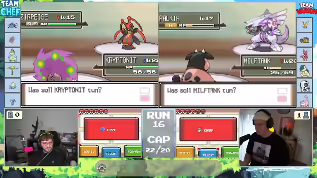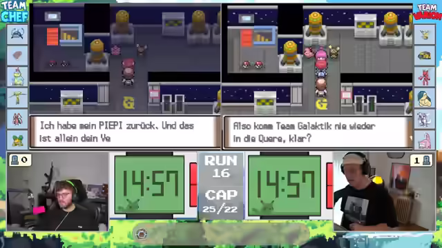 00:00:25Frustriert über eine Niederlage gegen den Arenaleiter, muss den Kampf wiederholen. Technische Probleme mit der Chat-Funktion "Stream Together" treten auf, was zu kurzzeitigen Unterbrechungen und Neustarts führt. Es wird über die korrekte Verwendung des Begriffs "Encounter" diskutiert und die Heilung der Pokémon thematisiert. Mogelbaum wird als eher schwaches Pokémon eingeschätzt. Es folgt die Entscheidung, einen Encounter zu suchen, wobei der Fokus auf dem Fangen eines legendären Pokémon liegt. Der erste Fangversuch gilt Palkia, gestaltet sich jedoch schwierig, da es oft paralysiert und Volltreffer landet. Es wird überlegt, ob es sich lohnt, Palkia zu fangen, da es als eher schwaches Pokémon angesehen wird und der Link insgesamt als unvorteilhaft eingeschätzt wird. Nils führt einen Raid durch und es wird überlegt, welches Pokémon für Chef Strobel am besten geeignet wäre, idealerweise Dialga. Diskussionen über alternative Namen für das Pokémon und die Notwendigkeit, Pokébälle zu kaufen, um den Fang nicht zu gefährden. Überraschung über die Vielfalt der Pokémon, die durch den Dingslink erhalten werden können, einschließlich Wasser- und Licht-Pokémon. Es wird ein Altar gefangen, genannt Altar 2, und die Frage aufgeworfen, ob Silberhauch für Palkia nützlich ist. Es wird festgestellt, dass der Item für Chef Strobel gebunden ist und die Chance auf ein Palkia diskutiert. Es wird ein Weißorb gefunden, dessen Nutzen für Pykeia erläutert wird, da es nur von diesem getragen werden kann und Aquawelle sowie Drachenklaue verstärkt.