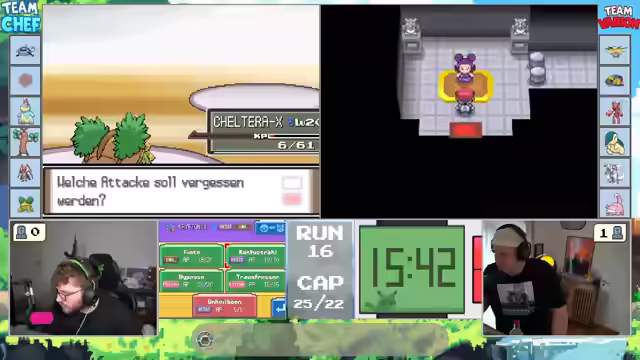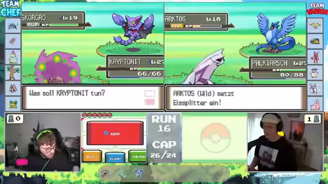 01:04:55Der Kampf gegen Togeiss gestaltet sich schwierig, da es Edelmut besitzt und oft zurückschrecken lässt. Steinwurf wird eingesetzt, aber es gibt Probleme beim Treffen. Schließlich wird Togeiss besiegt und ein Eis-Pokémon namens Fiona gefangen. Es wird festgestellt, dass Fiona weiblich ist und die Möglichkeit besteht, sie mit einem Funkelstein zu einem Frostedje zu entwickeln. Fiona wird als "Arsch" bezeichnet, aber der Link wird dennoch als spielbar angesehen. Es wird überlegt, wie Fiona genannt werden soll, und schließlich wird sie "Die Bohne" genannt. Es wird festgestellt, dass der Funkelstein vorhanden ist, was die Entwicklung zu Frostedje ermöglicht. Der Kingstein wird gefunden, der für den Tausch benötigt wird. Der Wunsch nach einer Regel in der Nasslocke, die den Tausch von drei Items erlaubt, wird geäußert. Es wird gefragt, ob Haltstatusprobleme bei Regen auftreten. Es wird festgestellt, dass keine weiteren Counter geholt werden können und der Arenakampf bevorsteht. Die Arenakämpfe werden als Kryptonit des Streamers bezeichnet. Es wird überlegt, was zuerst bestellt werden soll. Es wird festgestellt, dass zwei TMs geholt werden können, aber diese als scheiße bezeichnet werden (Gigastoss und Raub). Alle Items in einem bestimmten Bereich werden geholt. Es wird eine Pause angekündigt. Es wird überlegt, wie lange der Stream noch dauern wird (zwischen 16:30 und 17:00 Uhr). Kresse und Konfus 3 werden gefunden. Es wird über die Häufigkeit des Flinschens im Spiel geärgert. Unheilböhn wird als Omniboost-Attacke beschrieben und Konfustrahl wird dafür entfernt. Das Team wird aufgelistet und die Trainer in der Arena werden nicht zurückgesetzt. Die Levelbegrenzung wird überprüft und auf 26, 24 korrigiert. Agilität wird entfernt und Eiszahn wird beigebracht. Bodyslam wird anstelle von Stampfer gewählt, da Stampfer zurückschrecken kann. Es wird gespeichert und die Arena betreten. Das Zusammenspiel von Einigler und Walzer wird nicht gekannt. Es wird darauf hingewiesen, dass jedes Pokémon einmal flincht. Venuflubis wird nicht mehr gespielt. Regentanz wird gespielt und Schaltere wird eingesetzt. Es wird festgestellt, dass der Schaden normal ist, da es sich um Pflanzeboden handelt und nicht um Boden. Es wird ein Trank eingesetzt und das Overlay wird aktualisiert. Rettan wird eingesetzt und Welsa wird empfohlen. Überreste werden gefunden. Ein Trank wird auf Chelterra eingesetzt, da dieser noch Siukun hat. Es wird festgestellt, dass Volltreffer tödlich ist. Shail Terra wird eingesetzt und ein Trank wird gezündet. Es wird festgestellt, dass der Gegner Eiszahn hat.