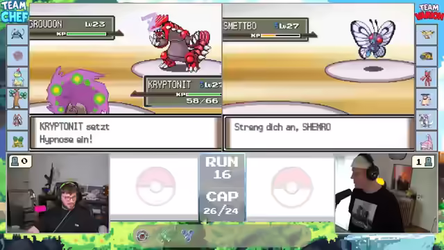 01:40:38Es wird festgestellt, dass Decker ein Wasser-Drache ist, was ungewöhnlich erscheint. Die bisherige Erfolgsbilanz im Spiel wird kurz erwähnt. Der Fokus liegt auf der bevorstehenden Auseinandersetzung mit dem Rivalen, wobei Unsicherheit über dessen Pokémon-Team herrscht. Es wird überlegt, welche Pokémon der Rivale einsetzen könnte und welche Strategien angewendet werden sollen. Persönliche Vorlieben bezüglich des Essens während des Streams werden angesprochen, und es wird der Bedarf an einer besseren Ausrüstung für den Streamer erwähnt. Die Attacke Flammrad wird als physisch eingestuft. Es wird über den Gegner Schmerbe gesprochen, welcher noch nicht entwickelt wurde. Ein amüsantes Detail wird geteilt: Ein Pokémon hat den Streamer bereits dreimal als Gefährte bezeichnet. Die Entscheidung, welches Pokémon eingesetzt werden soll, wird diskutiert, und es wird festgestellt, dass das gegnerische Pokémon paralysiert ist. Überraschung über ein Graudon als letztes Pokémon des Gegners wird geäußert. Es wird eine Strategie entwickelt, bei der das eigene Pokémon geboostet wird, um den Kampf zu gewinnen. Es wird spekuliert, dass der Gegner keine Feuerattacken hat. Die Möglichkeit einer Wette wird angesprochen, und es wird überlegt, ob Superbälle gekauft werden sollen, um vorbereitet zu sein.
