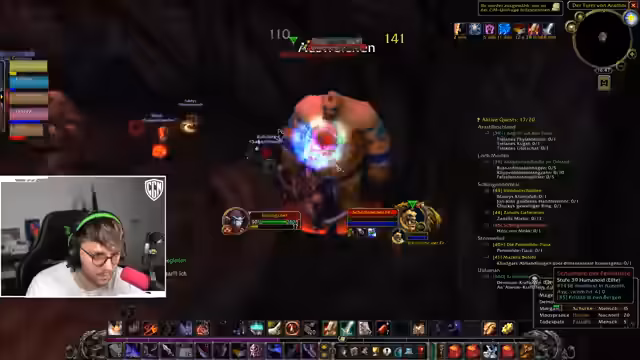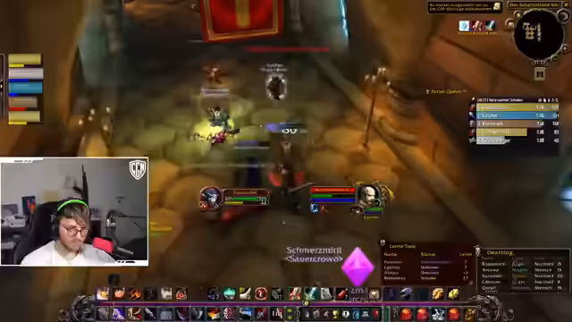 11:18:56Die Gruppe ist in einen Kampf involviert, bei dem der Streamer riskante Taktiken anwendet, um Elite-Mobs zu besiegen. Er nutzt 'Vanish' und 'Sprint', um Aggro zu verlieren und zu entkommen, was als 'geisteskrank' und 'krass' beschrieben wird. Die Kämpfe erfordern präzises Timing und den Einsatz von Fähigkeiten wie 'Dynamit'. Die Mitspiiler unterstützen sich gegenseitig, es kommt aber auch zu kritischen Momenten, in denen der Streamer seine Taktiken verteidigt und die Kompetenz seiner Mitspiiler hinterfragt.