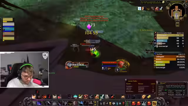 07:25:45Ein kritischer Moment entsteht durch eine Konfrontation mit einem anderen WoW-Streamer namens Peekaboo. Dieser kritisiert den Streamer scharf, bezeichnend ihn als 'Roach' aufgrund seines niedrigen Damages in einem vorherigen Dungeon. Der Streamer rechtfertigt sich damit, dass er mehrere Level unter den anderen Spielern war, wodurch seine Fähigkeiten eingeschränkt waren und er die Mobs nur mit geringer Trefferchance bekämpfen konnte.