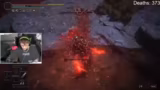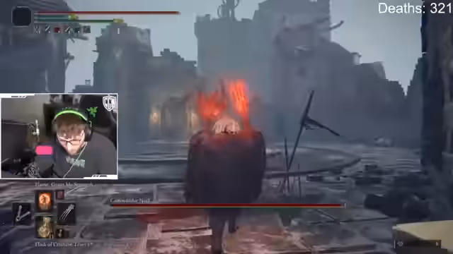 00:32:19Der Streamer konfrontiert einen schwierigen Endgegner namens Astel, Stars of Darkness. Der Boss ist besonders herausfordernd, da er ständig Angriffe spamm und der Spieler in engen Räumen kämpfen muss. Der Streamer hat große Probleme mit dem Timing der Ausweichmanöver und stirbt mehrmals. Er beschreibt den Kampf als frustrierend und versucht, verschiedene Strategien anzuwenden, darunter das Benutzen von Ash of War und das Timing von Angriffen basierend auf dem Sound des Bosses.