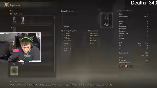 02:42:59Nachdem den Boss besiegt hat, erhält der Streamer neue Gegenstände, darunter eine Meteor-ähnliche Fähigkeit. Er beschließt, seinen Spielstil zu ändern und zukünftig als Magier zu spielen, anstatt mit Klauen. Er plant, den DLC komplett als Magier zu durchspielen, aber er muss zuerst Runen ausgeben und seine Fähigkeiten umstellen.
