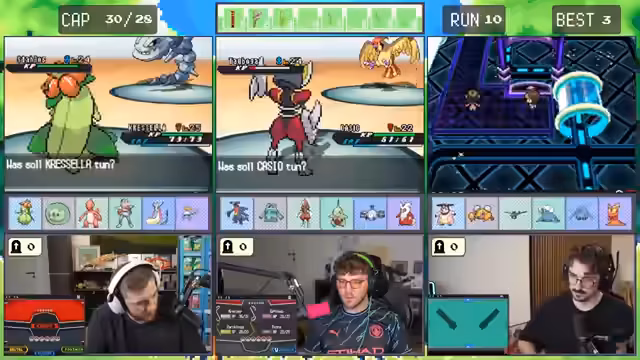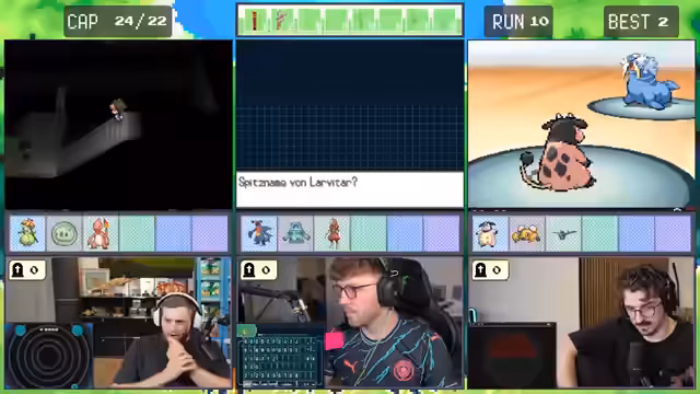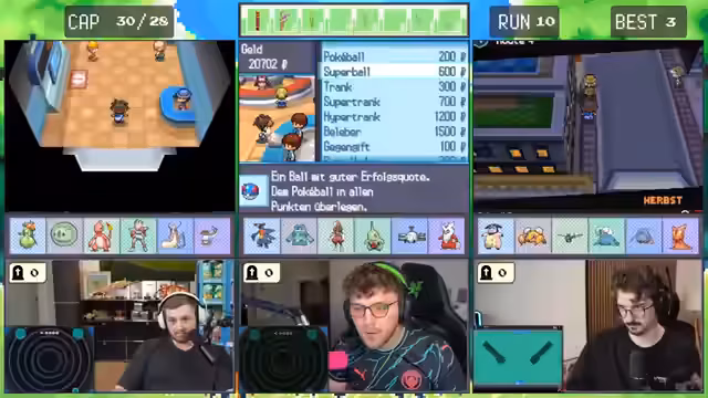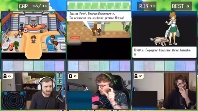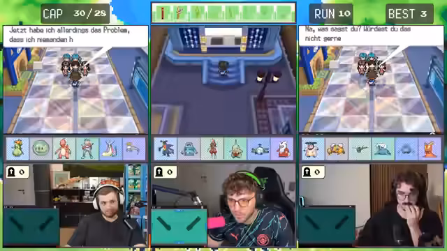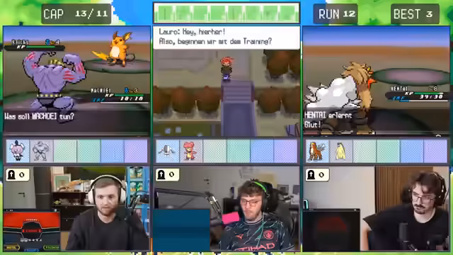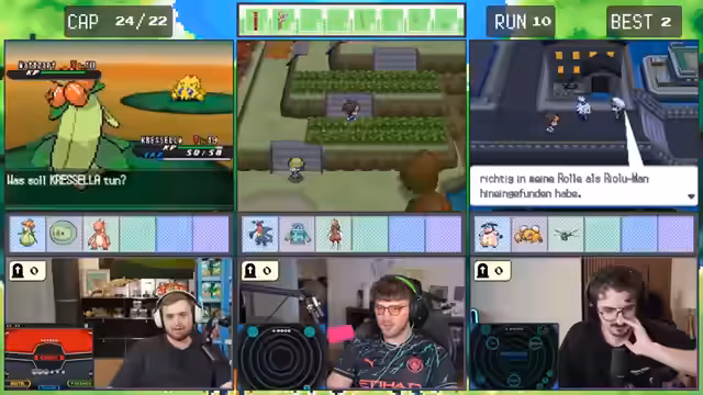 Es wurde ein gemeinsames Abenteuer gestartet. Ein trio erkundete die Spielwelt von Pokémon Schwarz-Weiß 2 und legte dabei strategische Pläne für den Fang diverser Pokémon fest. Im Fokus stand die Stärke des Teams, die an dem schwächsten Glied gemessen wurde. Die Route wurde von entscheidenden Kämpfen und Fangversuchen durchzogen.