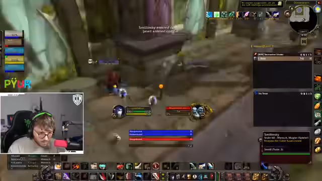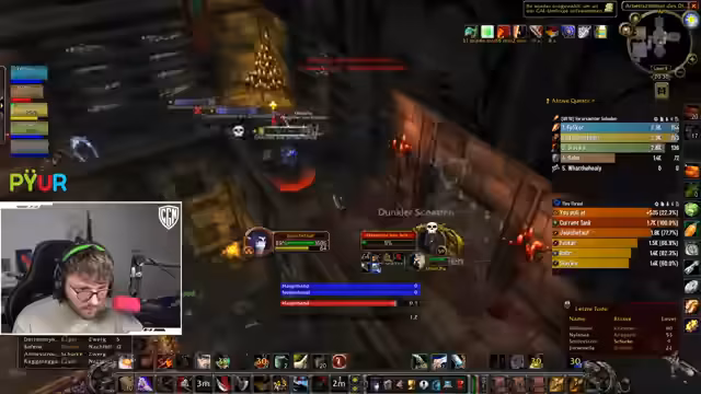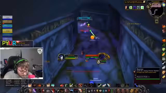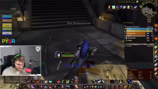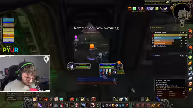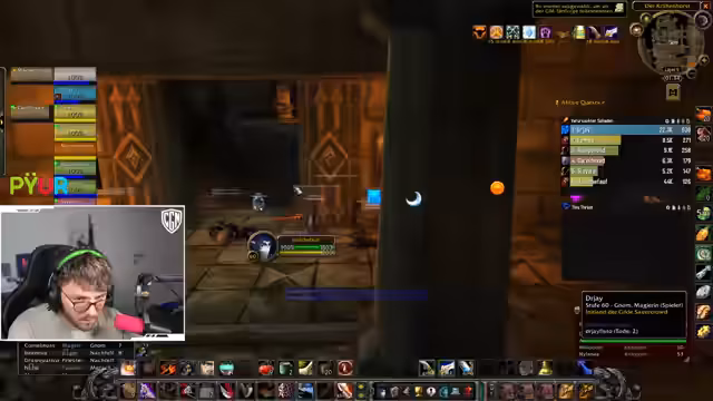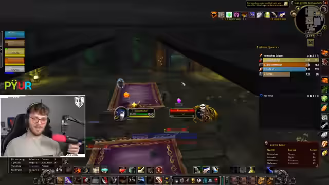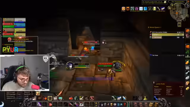 09:47:28Im Fokus des Streams steht die Durchführung eines Dungeons, wobei der Streamer die Taktik für die Gruppe koordiniert. Es wird über das Vorgehen bei Bosskämpfen diskutiert, einschließlich des richtigen Pulls der Gegner und der Verteilung von Rollen wie dem Tanking und dem Anwenden von Verzauberungen. Die Stimmung ist entspannt, und die Gruppe bewältigt die Herausforderungen trotz einiger kleinerer Fehler wie dem versehentlichen Aggro-Ziehen oder falschen Zauberanwendungen. Es werden Drops wie ein spezieller Ring und eine wertvolle Waffe vermerkt, was die Spannung im erhöht.