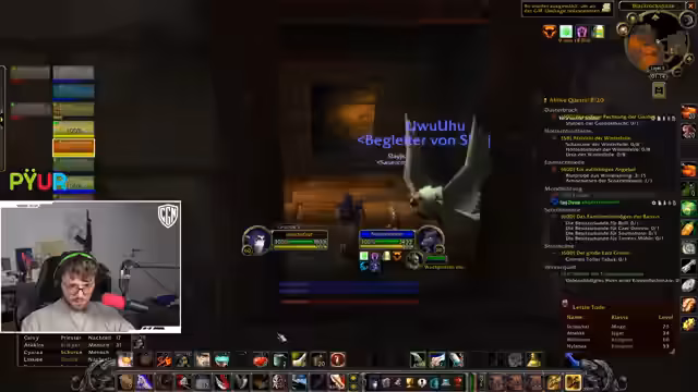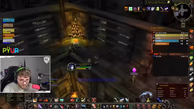 09:17:34Nachdem der UBRS-Voll-Lauf aufgrund der fehlenden Schlüssel-Haber und der Müdigkeit der Spieler ausfällt, konzentrieren sich die Pläne auf einen einzelnen DM Nord Tribut-Run, der als entspannt und schnell gilt. Dies scheitert jedoch an der Organisation von Frostöl. Der Streamer stellt fest, dass er genug habe, und schlägt stattdessen einen Scholomance-Lauf vor. Er nimmt dabei den neuen Spieler Niki mit, der sein erstes WoW-Erlebnis auf Level 60 hat, und übernimmt die Rolle des Coaches, während er ihm die Mechanics und Gefahren des Dungeons erklärt.