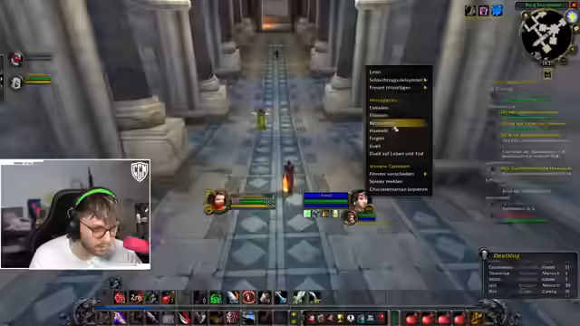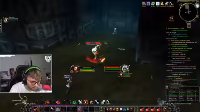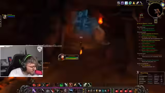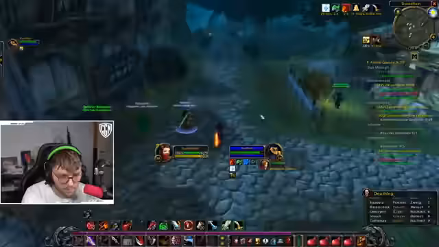 02:10:53Die Gruppe betritt das Verlies, und der Spieler bemerkt die niedrigen Gegner-Stärken. Er diskutiert seine Ausrüstung, insbesondere seine Waffe mit Feuer-Verzauberung, und stellt fest, dass er trotz Startwaffe gut zurechtkommt. Während des Kamps spawnen zusätzliche Gegner, die die Gruppe herausfordern. Der Spieler erwähnt ein bevorstehendes WoW-Hardcore-Event und dass er seinen Charakter danach schlafen legen wird. Er stirbt fast durch einen Entwaffnungsangriff, aber die Gruppe überlebt und fährt mit dem Dungeon fort.