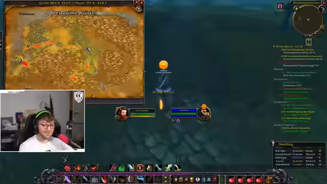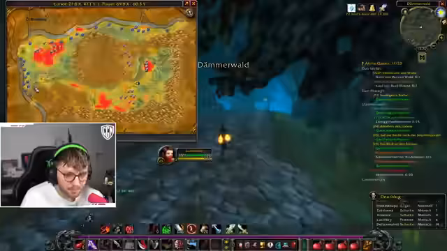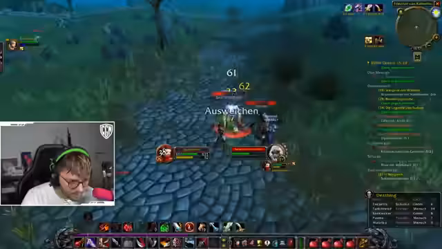 03:34:04In diesem Abschnitt diskutiert der Streamer intensiv Kampfmechaniken und Herausforderungen in World of Warcraft. Er bemerkt, dass Gegner bluten und Schaden verursachen, während er versucht, spezifische Aktionen wie das Klicken von Objekten auszuführen. Es gibt Verwirrung über den Status eines Charakters, der scheinbar nach langer Vorbereitung unterbrochen wurde, und er reflektiert über frühere Fehler wie Panik in Level 26-Situationen. Die Gruppe diskutiert Quest-Annahmen, Mana-Management und Strategien für den Umgang mit Elite-Gegnern, während sie über Risiken wie tödliche Höhlen und unerwartete Mob-Pulls sprechen.