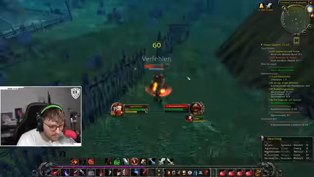 05:58:53Nach einer的风险reichen Begegnung mit einem Elite-Mob wird diskutiert, ob anspruchsvolle Quests wie 'Braut des Einbalsamierers' im Hardcore-Event machbar sind. Der Streamer rät davon ab, wenn der Mob mehr als zwei Level über den Spielern steht, da dies hohe Ausweichraten verursacht. Stattdessen wird empfohlen, sich auf sicherere Quests zu konzentrieren oder Gruppen zu bilden, um das Todesrisiko zu minimieren.