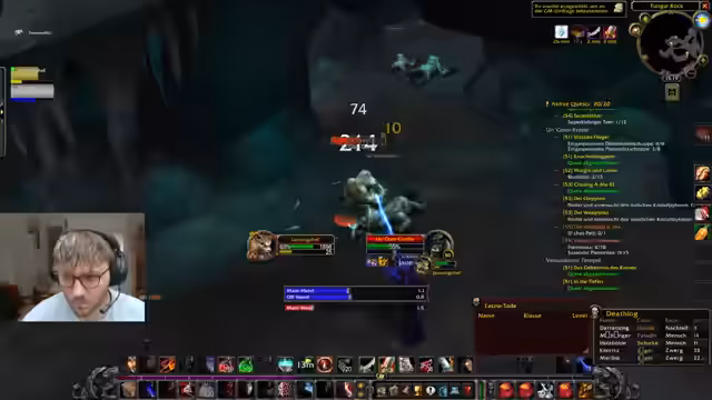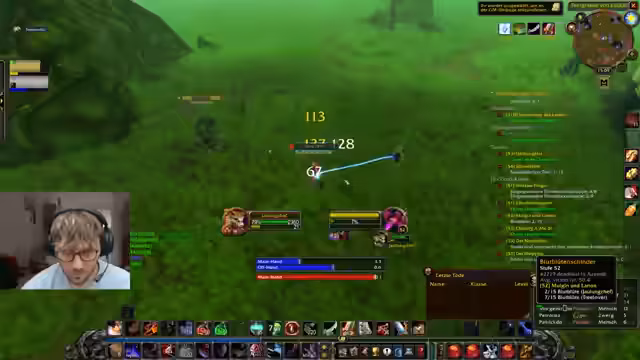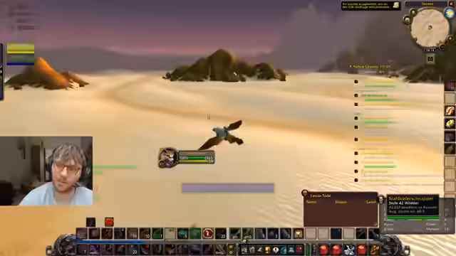 06:25:56Der Streamer setzte sein Leveln im Ödland fort und beschwerte sich über die nervige Quest nach den Seiten des Brüschlammers, die nur bei sehr wenigen Mobs droppten. Zeitlich war es nicht mehr möglich, den Tempel zu besuchen. Man diskutierte über alternative Gebiete wie Pestländer oder Sengende Schlucht für Quests, wobei die Probleme mit den Layern immer wieder erwähnt wurden.