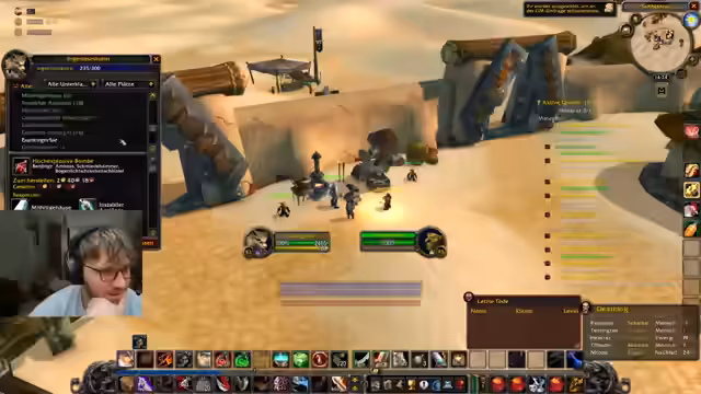 06:08:10Der Streamer kämpfte mit einer nervigen Schurken-Quest, bei der er Mobs nicht töten durfte, um seinen Ruf nicht zu verschlechtern. Gleichzeitig gab es Probleme mit dem World Buff aus Booty Bay, der sich nicht wie erwartet verhielt und neu angewendet werden musste. Die Jagd nach dem Buff erforderte schnelles Handeln, da der Buff nicht angekündigt wurde.