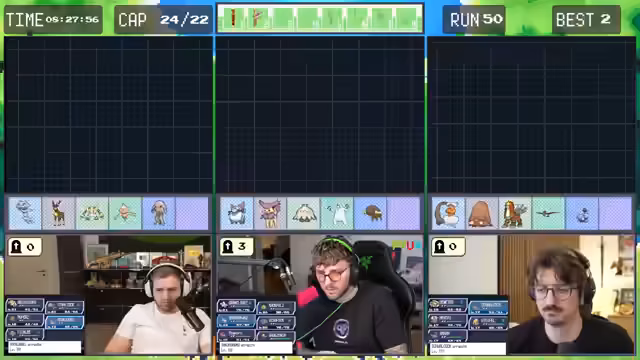 03:10:09Die Streamer versuchen Pokémon zu fangen, stehen aber unter Druck durch Trainer und Zeit. Man entscheidet, Pokémon abzulegen und zu sammeln, um effizienter voranzukommen. Es kommt zu technischen Problemen wie Lags, die die Kämpfe erschweren. Die Unordnung in den Teams und die Positionierung der Trainer führen zu unfairen Situationen und vermeidbaren Verlusten, was die Gemüter erhitzt. Man diskutiert über Strategien wie Hypnose oder Schadensreduktion.