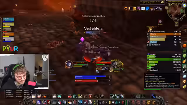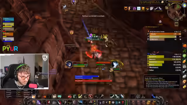 00:57:12Der Stream beginnt mit dem Fortschritt im 60er Dungeon Blackrock Depths. Die Gruppe arbeitet sich durch Ghule und Gargoyles, wobei der Streamer auf die besondere Rüstung eines Mili-Gargoyles hinweist und die Position von Feinden sowie deren Aggro-Radius sorgfältig abklärt. Es wird eine Taktik entwickelt, um bestimmte Mobs wie Necromancer und Rangers zu pullen und zu eliminieren, ohne dabei unbeabsichtigt Nachzügler anzuziehen. Der Fokus liegt auf einer kontrollierten Bewegung im Dungeon, um Kampfumstände zu optimieren und unnötigen Schaden zu vermeiden.
