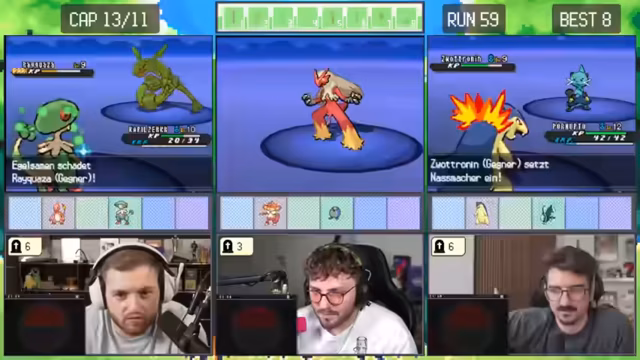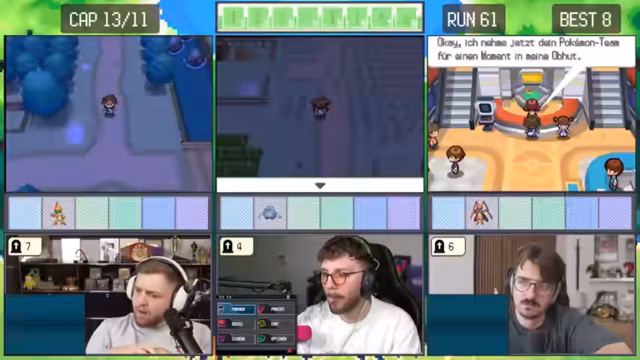Es wurden mehrere Stunden League of Legends gespielt, mit Fokus auf die Verbesserung der Spielziele und die Meisterung verschiedener Rollen. Gleichzeitig wurde an der Pokémon Challenge weitergearbeitet, bei der strategische Teamzusammenstellungen und Fangmethoden im Vordergrund standen. Trotz der anspruchsvollen Aufgaben wurden Erfolge gefeiert und neue Pokémon in das Team integriert.
