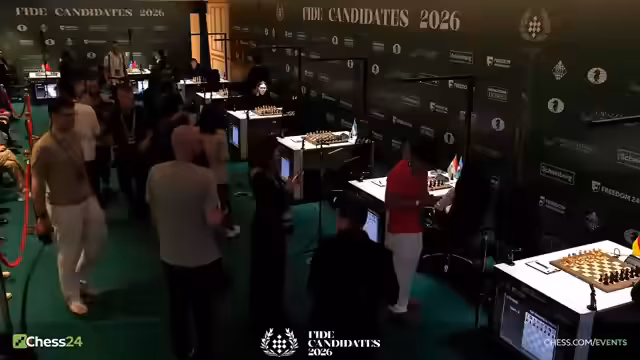04:38:12Die Stimmung im Stream hat sich beruhigt und die Zuschauerzahlen sind gesunken. Kommentatoren berichten, dass sich viele Zuschauer der laufenden Partie von Vincent gegen Magnus zugewandt haben. Die Aufregung hat deutlich nachgelassen, was auch daran liegt, dass nach der Zeitkontrolle auf den Brettern nur noch wenig passiert und viele Partien remis zu enden drohen. Eine kommentarlos wirkende Stellung auf einem anderen Brett sorgt für gedämpfte Stimmung.