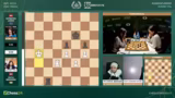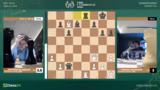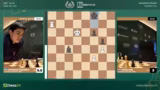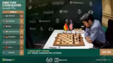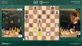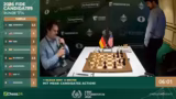 03:26:09Giri befindet sich in einer extremen Zeitnot und macht einen Fehler, der sofort vom Gegner ausgenutzt wird. Nach dem Zug Turm B6 wird die komplexe Stellung plötzlich klar: Weiß droht Matt in wenigen Zügen durch Springer C1. Giri kann nichts mehr ausrichten und gibt die Partie auf. Kommentator Jan beklagt, dass Giri den Übergang von seiner Vorbereitung zur Partie verpasst und zu spät mit dem Nachdenken beginnt.