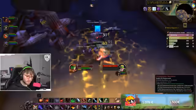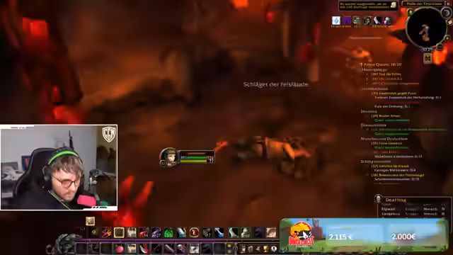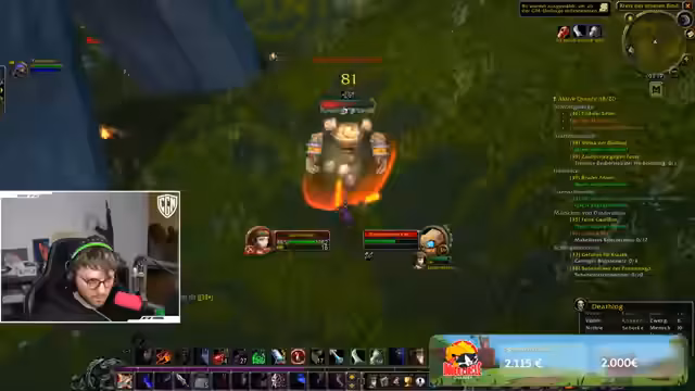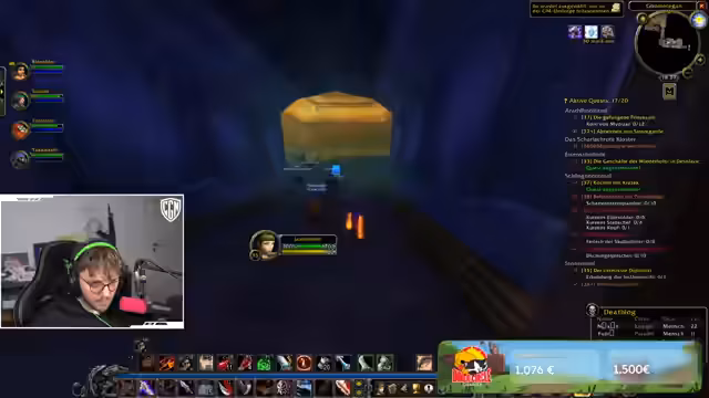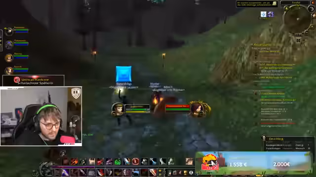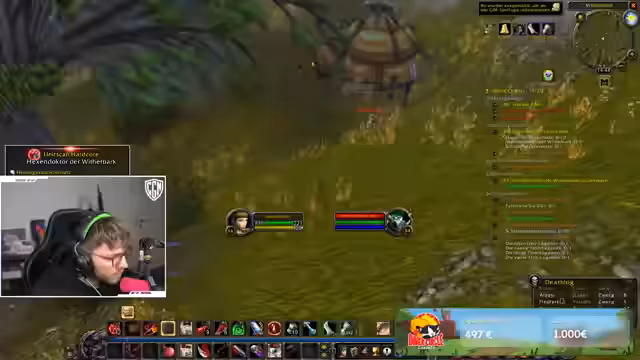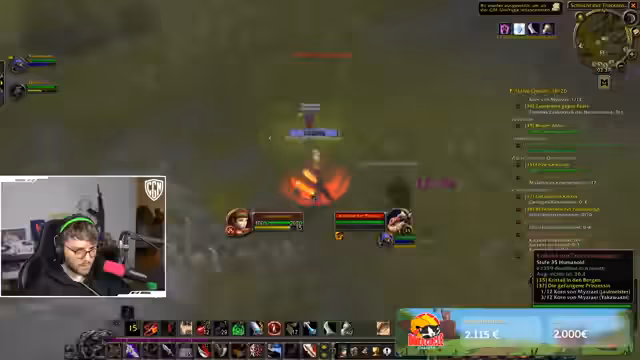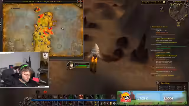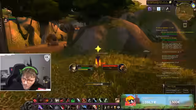 12:29:05Gemeinsam mit einem Mitspieler sucht der Streamer nach dem Questziel 'Mares Kopf'. Sie bekämpfen Monster in einer Höhle, koordinieren Angriffe und diskutieren Strategien gegen starke Gegner. Dabei stoßen sie auf Herausforderungen wie versteckte Questziele und komplexe Monster-Mechaniken, die Teamwork und Positionierung erfordern. Die Szene zeigt typische Herausforderungen bei kooperativen Quests in WoW.