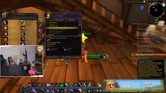 04:55:20Im Dungeon bekämpft die Gruppe Bosse wie Techbot und sammelt wichtige Quest-Items wie Maschinenteile. Es werden Strategien für spezifische Mechaniken besprochen, etwa das Vermeiden von Schleudereffekten und das Nutzen von Spezialflaschen für bestimmte Quests. Die Spieler diskutieren Loot-Möglichkeiten, darunter Verbesserungen für Ringe und Waffen, und planen, nach dem Dungeon weitere Gebiete wie Krall und das Kloster zu erkunden, während sie auf überlevelte Gegner treffen und ihre Ausrüstung optimieren.
