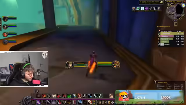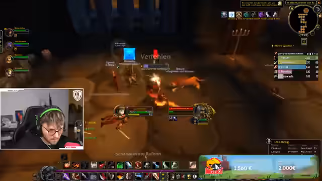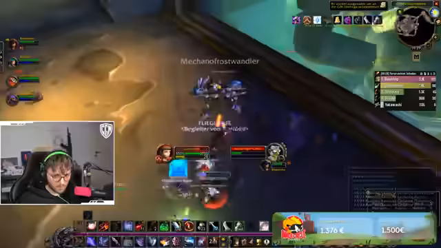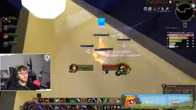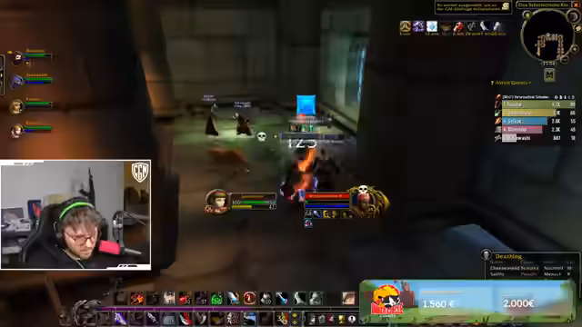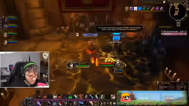 09:05:13In den frühen Phasen des Dungeons konzentriert sich das Team auf die Zusammenarbeit bei Kampfmechaniken. Ein Frostmage wird als Schlüsselelement erwähnt, wobei der Tank versucht, durch gezieltes Positionieren und Weglaufen vor Millis (Mobs) Schaden zu minimieren. Es wird über Heal-Strategien diskutiert, während Pausen für Getränke eingelegt werden. Kritisch ist die Überwachung von Boss-Markierungen (Todeskopf-Symbol), um Aggro-Probleme zu vermeiden. Der Streamer betont die Wichtigkeit von Disziplin, besonders bei unerwarteten Zügen des Mages, der ohne Absprache handelt.