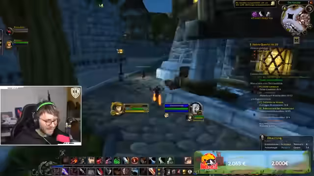00:29:30Während des gesamten Streams spielt der Streamer World of Warcraft, erfüllt Quests und sammelt Gegenstände. Dieser Teil dient als Unterhaltungsrahmen, während kontinuierlich für die Charity geworben wird. Herausforderungen wie das Besiegen von 'Schattenjägern' in Höhlen oder das Tauschen von Quest-Gegenständen werden genutzt, um Spannung zu erzeugen und die Zuschauer zum Spenden zu motivieren – oft mit Sätzen wie 'Spendet für Katzen, damit sie flink werden wie ich in Hardcore'.