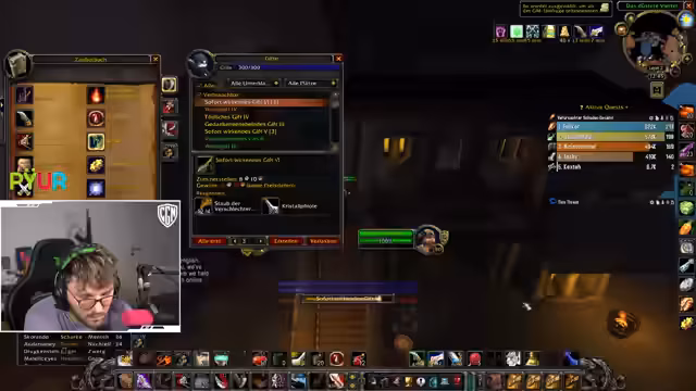 09:24:46Der Stream konzentriert sich auf das laufende Gameplay in einem Dungeon, wobei der Fokus auf der Koordination und dem Pullen von Gegnergruppen liegt. Der Streamer diskutiert verschiedene Pullstrategien, die Anordnung der Mobs und die Gefahren bestimmter Gegner, wie Skelette, die von hinten auftauchen. Die Dynamik im Team ist entscheidend, um Verwirrung und unnötigen Schaden zu vermeiden und einen reibungslosen Fortschritt zu gewährleisten. Es werden Fails erwähnt, wie der versehentliche Spawn eines Bosss durch einen Pullfehler, was zu hektischen Momenten führte.